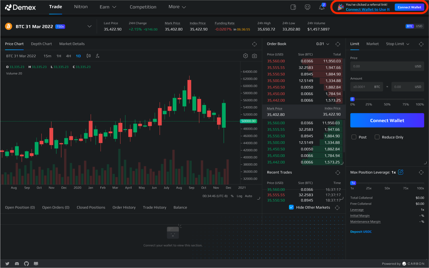 Click [here](https://guide.dem.exchange/~/changes/REiUq5w3vfdfOKEL0jdy/welcome) to begin your journey as a Demex user!