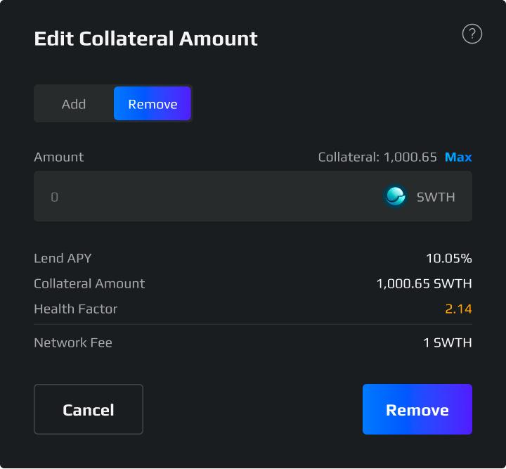 **Step 3:** Input the desired amount of collateral that you would like to add or remove accordingly.
