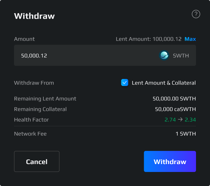 For example, you are wish to withdraw the SWTH that you have lent out.