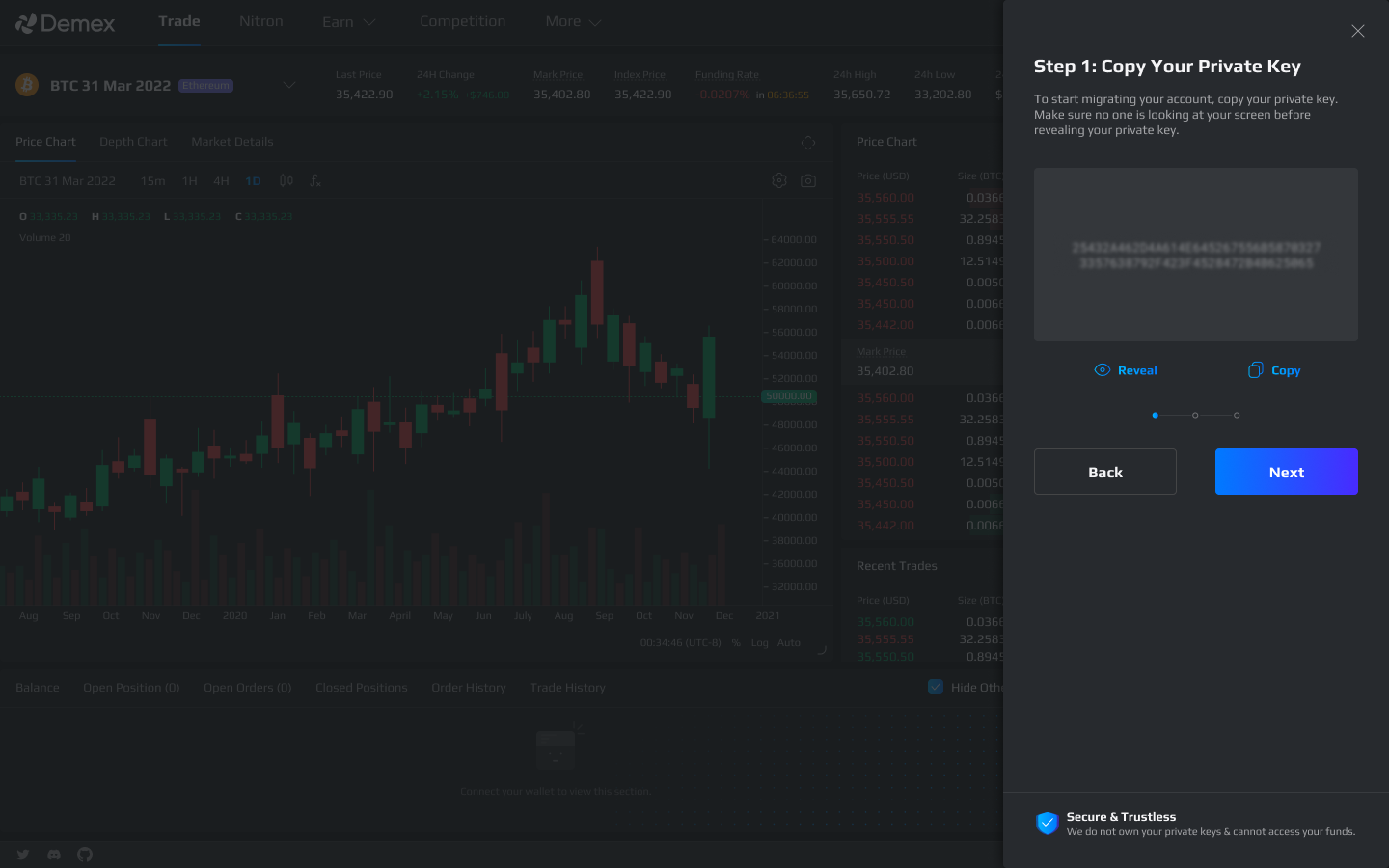 **Step 4**: Copy the private key given, and click on the 'Next' button.